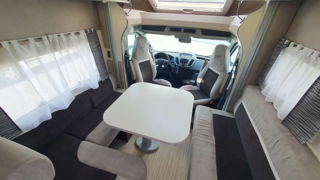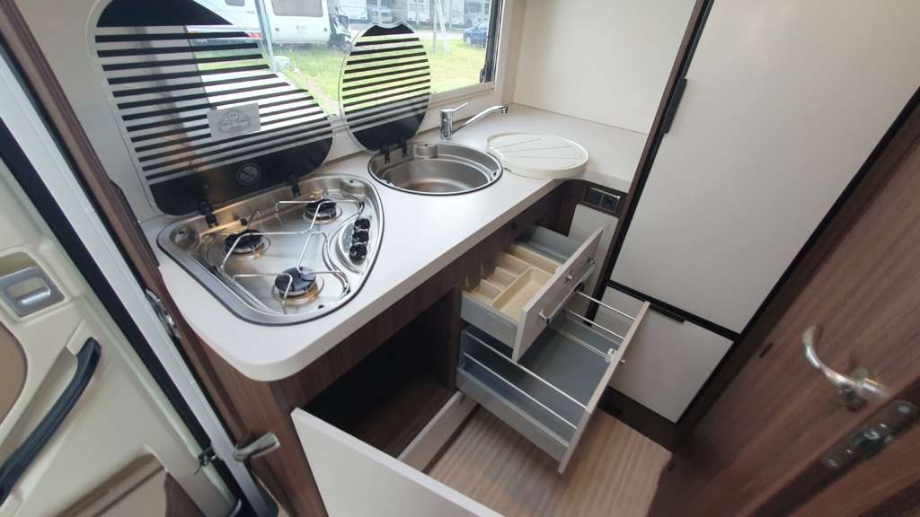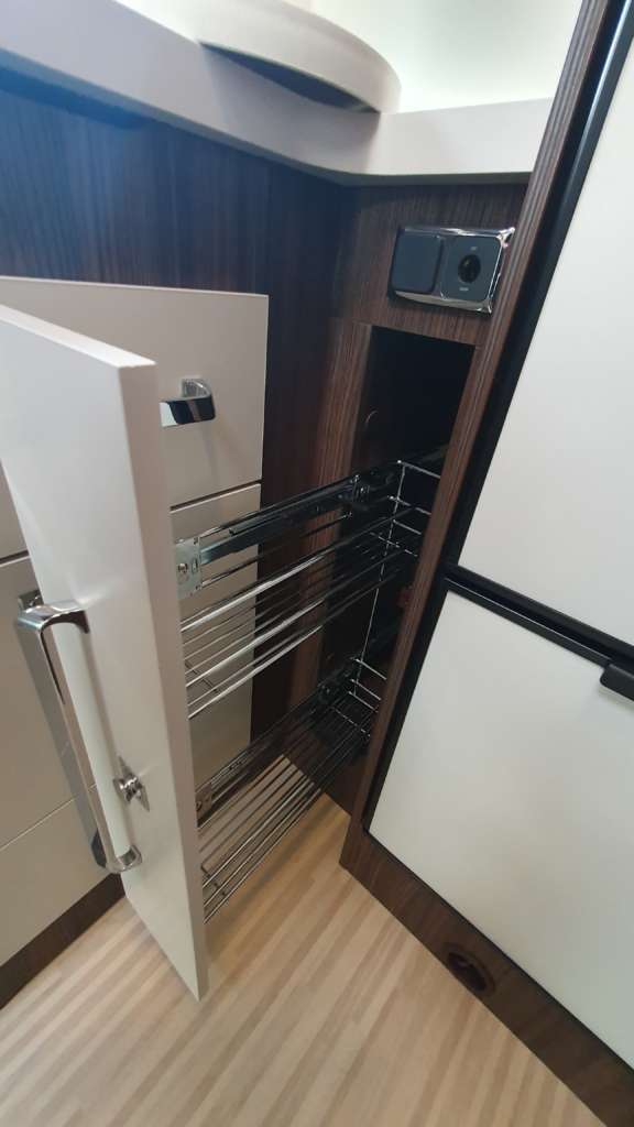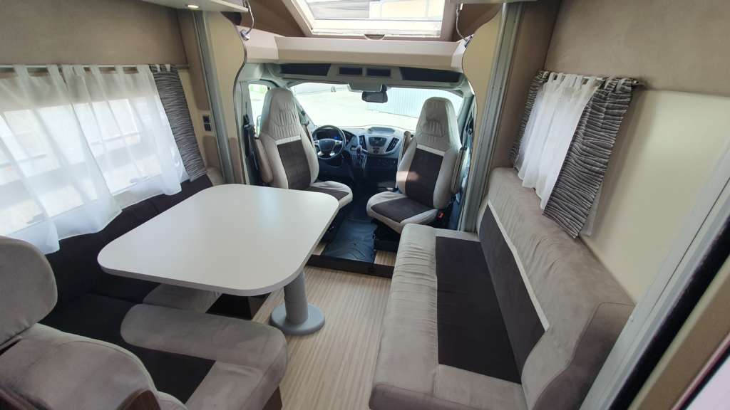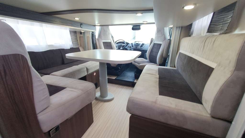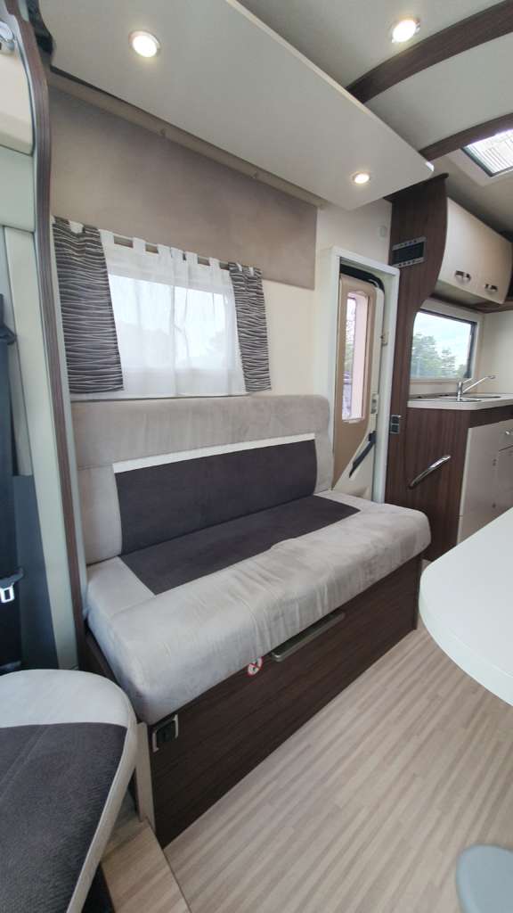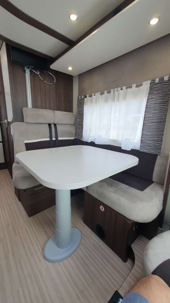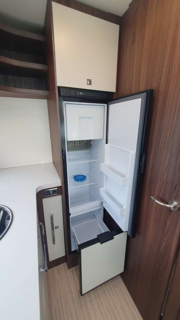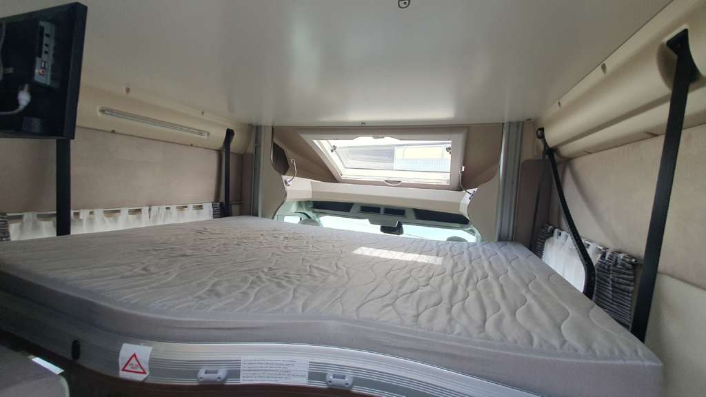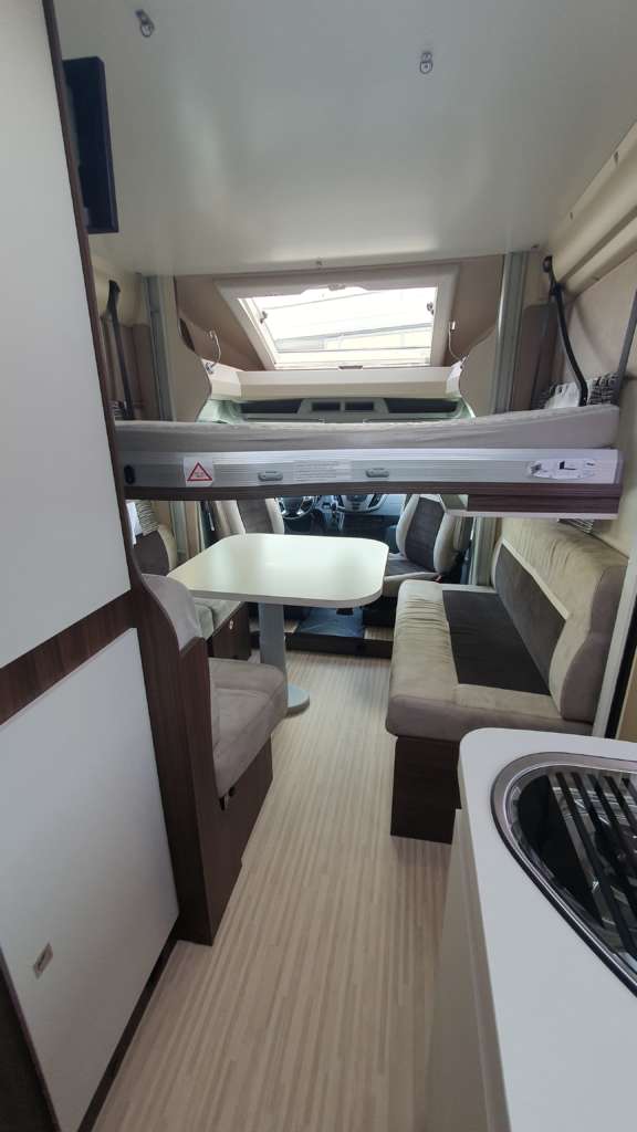 Cama suspendida del techo (cm) : 140/120×191 Comedor (cm) : 140×210 Gran frigorífico 140 l con cajón independiente para 9 botellas de 1, 5 l.